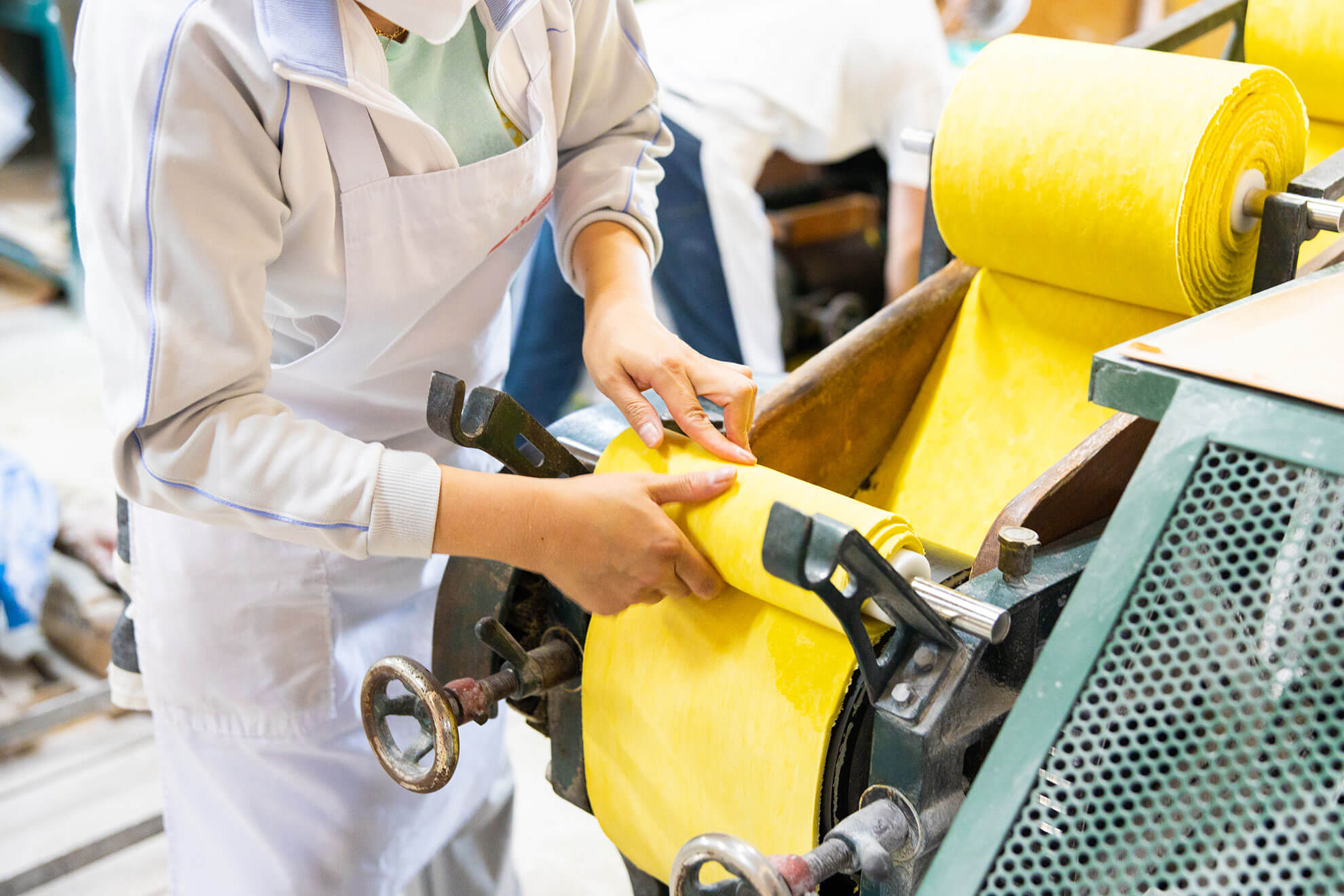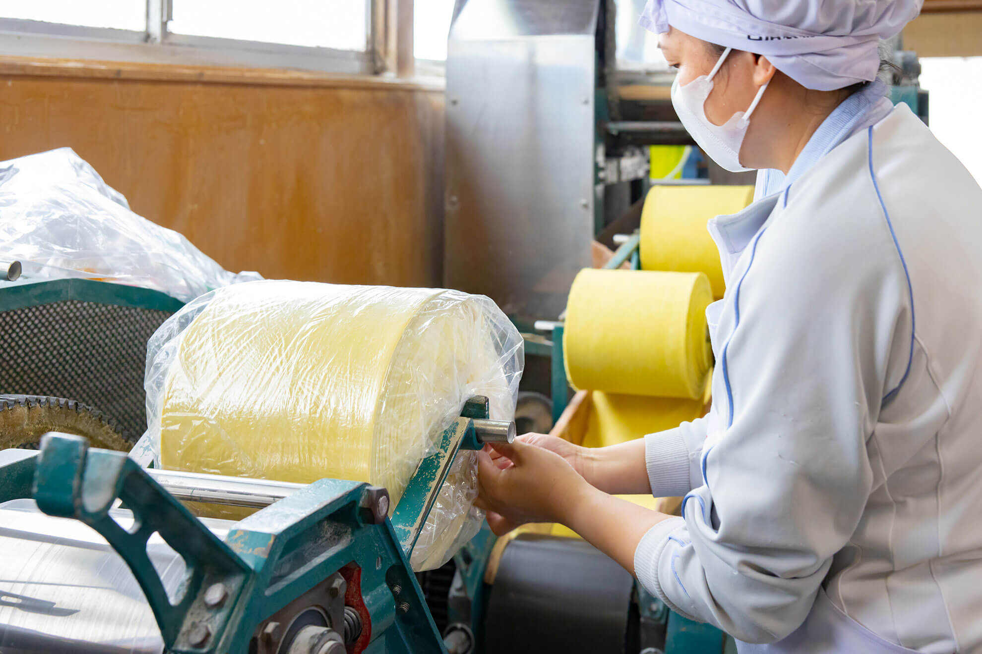 ミキサー、練機、圧延ロール機等、生麺の製麺に適した設備を導入しています。
